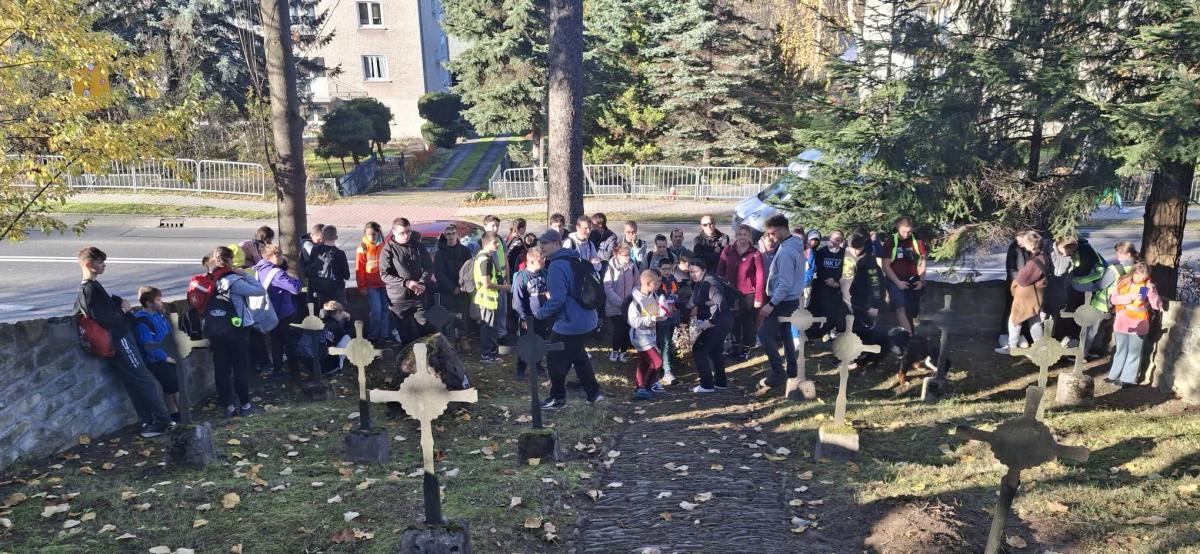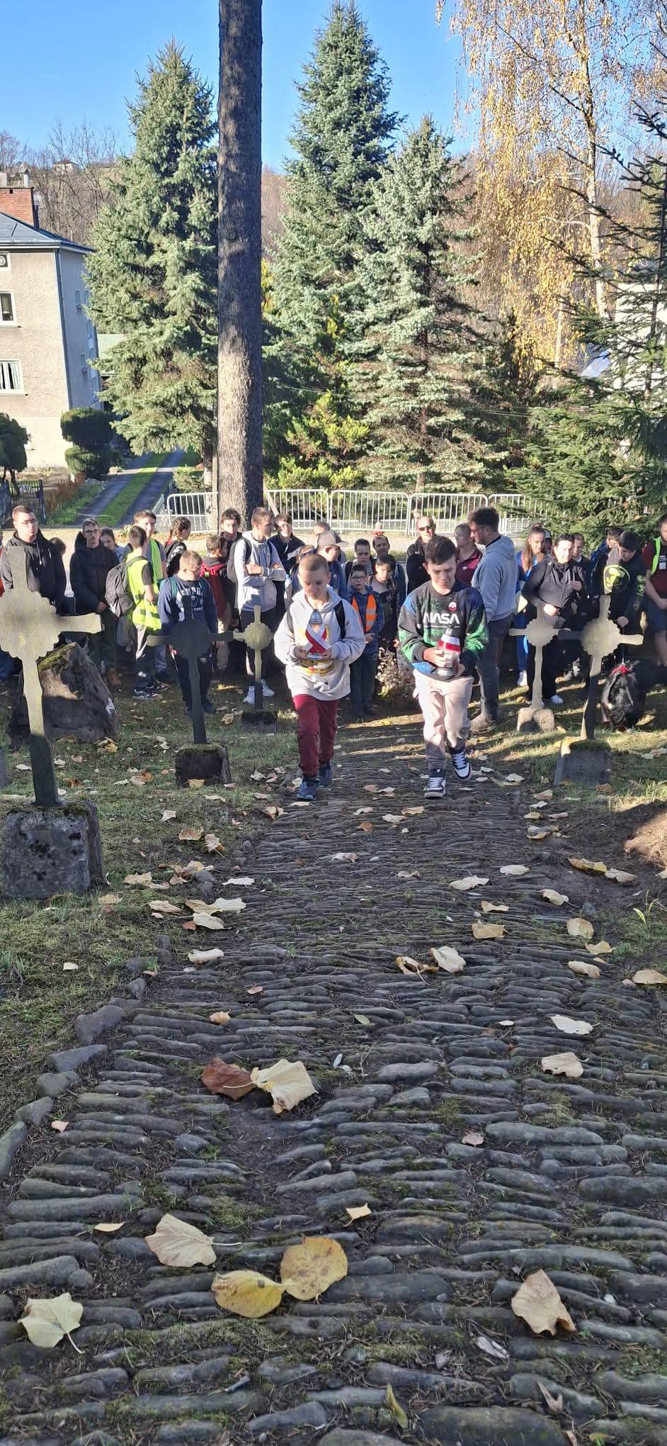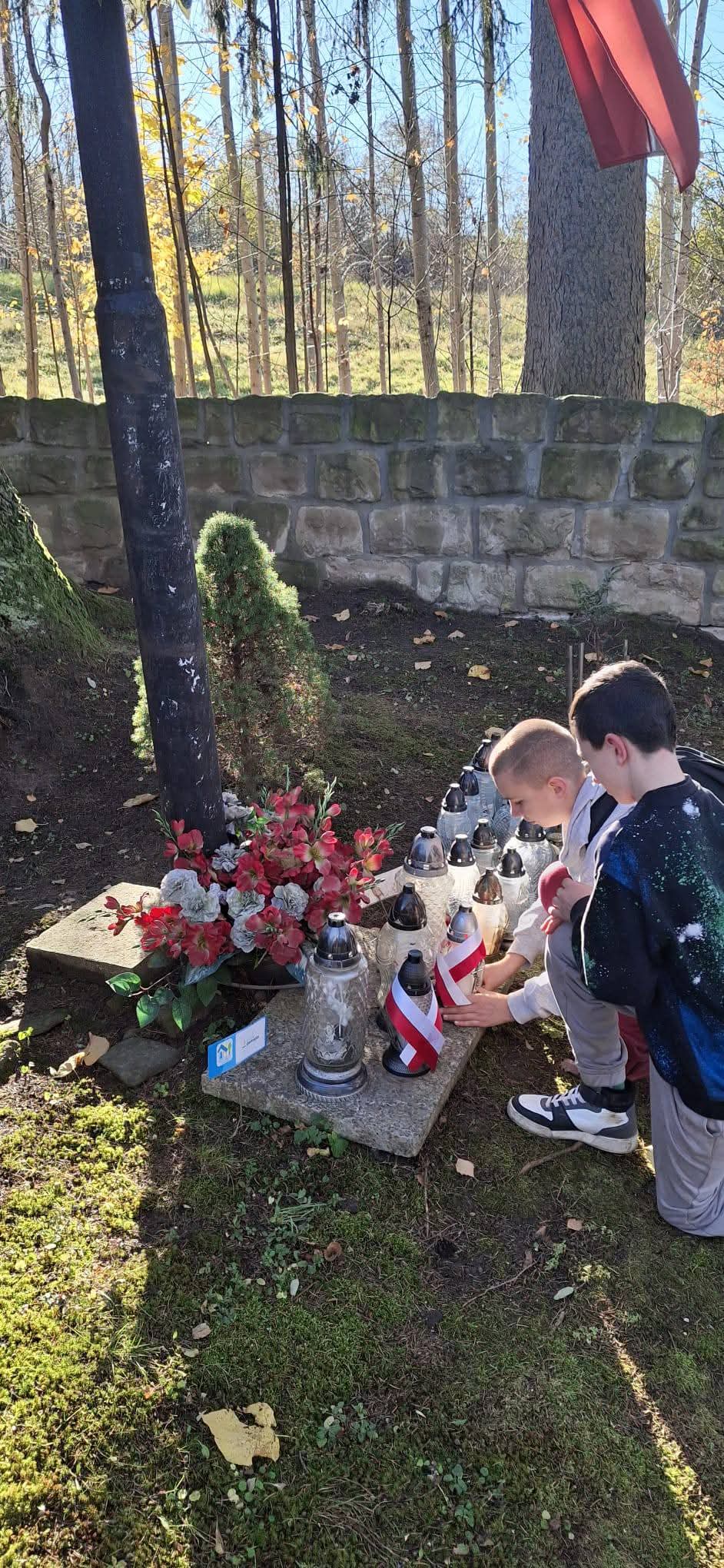 Po drodze odwiedziliśmy dwa pobliskie cmentarze wojskowe, gdzie złożyliśmy znicze na grobach żołnierzy poległych w obronie kraju.