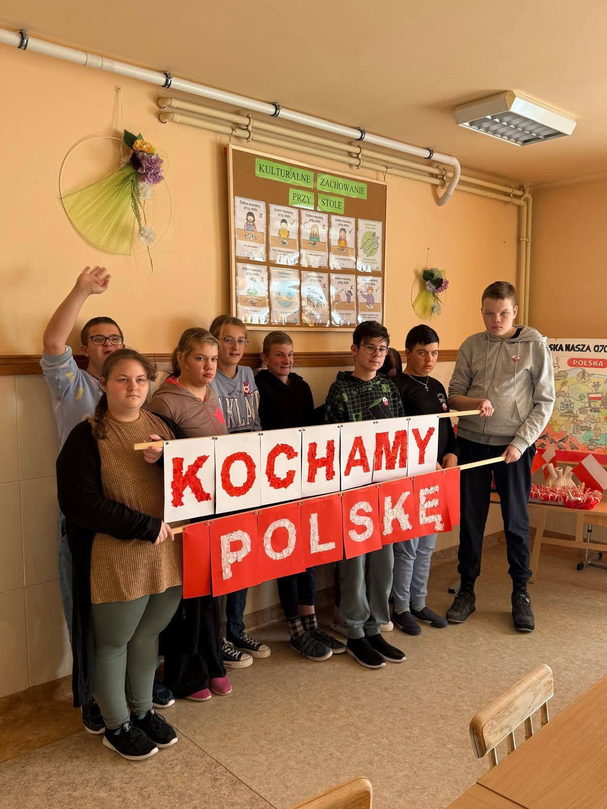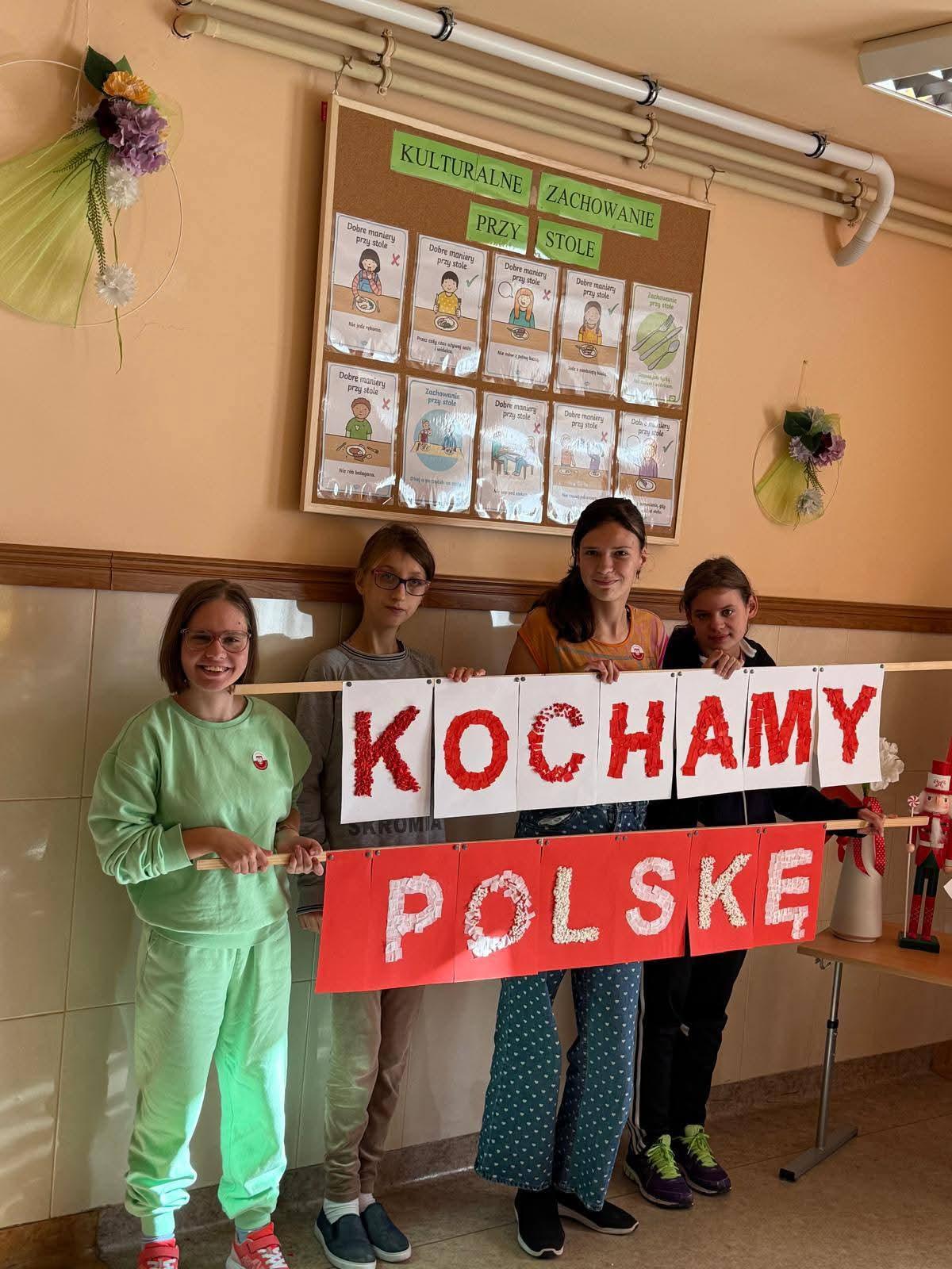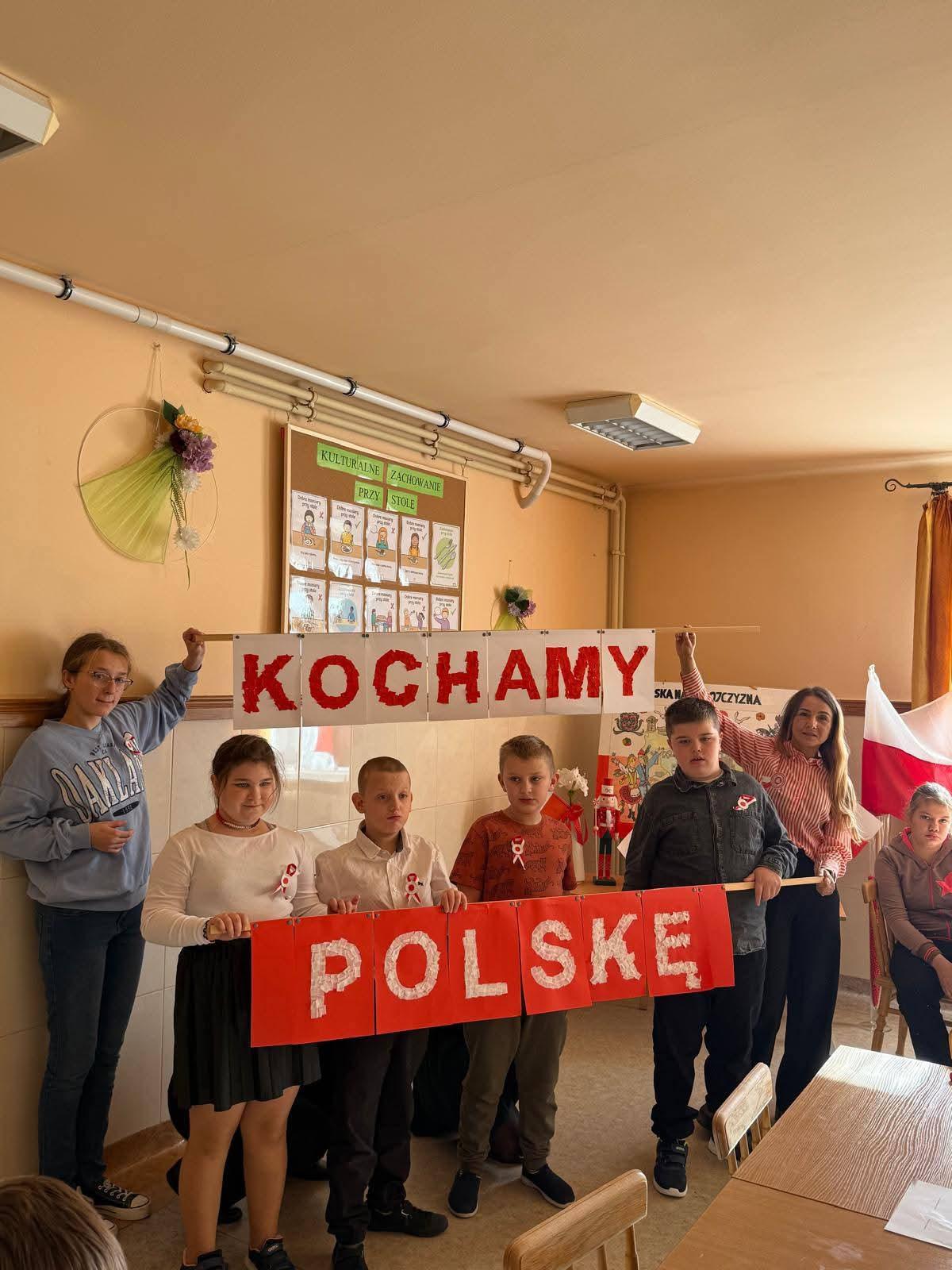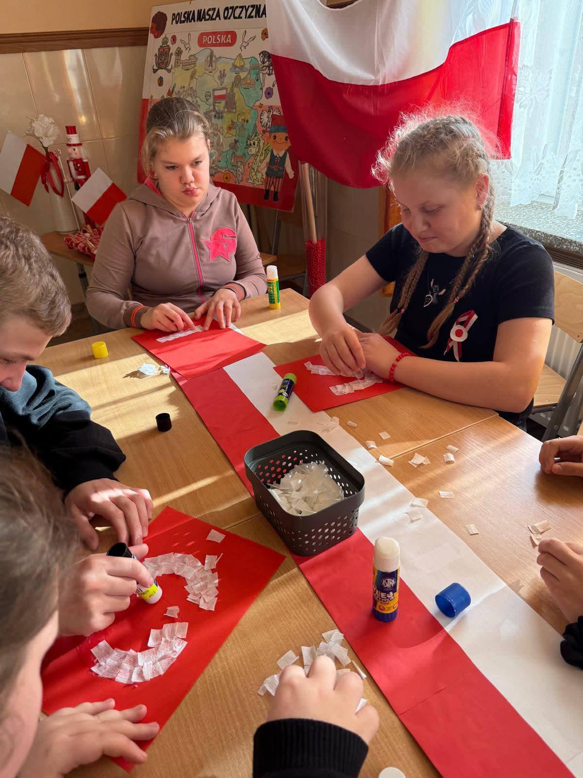 Na szkolnych korytarzach i w klasach pojawiły się biało-czerwone dekoracje i symbole narodowe.