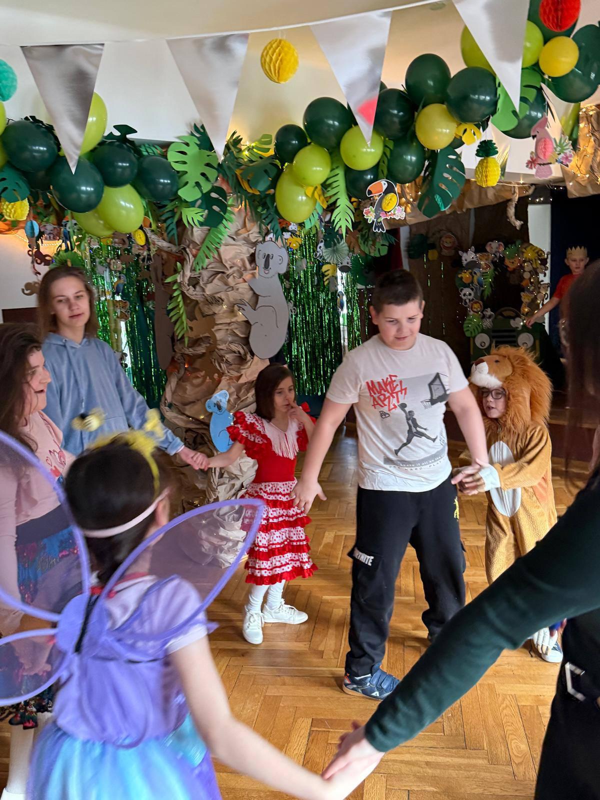 Drukuj Powrót do poprzedniej strony Zabawa karnawałowa 03.04.2026 6:12 Treść Co to była za zabawa!!! Dzień pełen tańca, uśmiechu i radości... Wszyscy bawiliśmy się świetnie w rytmach dżungli.