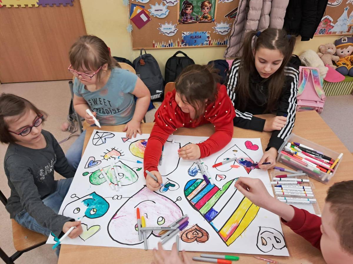 Na zajęciach w klasach młodszych oraz w świetlicy przygotowano specjalne walentynkowe zadania i zabawy.